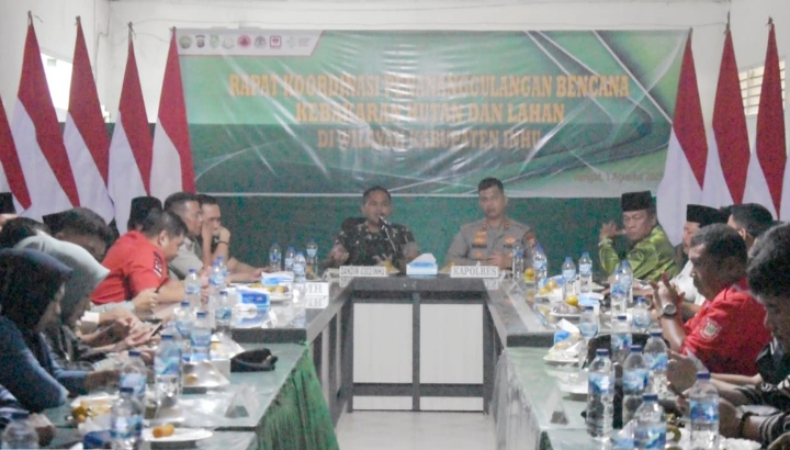 Suaralira.com, Rengat - Sebagai langkah untuk upaya melakukan kesiapsiagaan dalam mengahadapi potensi kebakaran hutan dan lahan (Karhutla) di Kabupaten Indragiri Hulu, Kodim 0302/Inhu memfasilitasi rapat Koordinasi Penanganan dan Penanggulangan Bencana Karhutla di kabupaten Indragiri Hulu Tahun 2025.