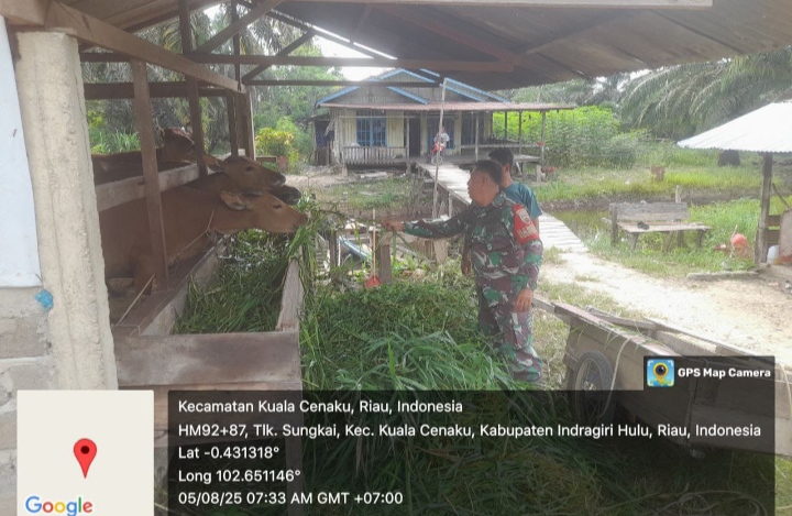 Suaralira .com, Rengat - Dalam upaya mencegah penyebaran Penyakit Mulut dan Kuku (PMK), anggota Koramil 01/Rengat, Kodim 0302/Inhu Serda khairul adil putra,melaksanakan pengecekan pada peternak sapi, di Desa teluk sungkai Kecamatan kuala cenaku,Selasa (05/08/2025).