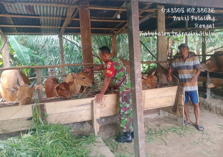 Suaralira.com, Rengat - Babinsa Koramil 01/Rengat Kodim 0302/Inhu, terus berupaya mencegah penyebaran Penyakit Mulut dan Kuku (PMK) di wilayah binaannya.ia melaksanakan pendataan dan pemantauan PMK di desa Bukit Petaling, Kecamatan Rengat Barat, Kabupaten Indragiri Hulu.