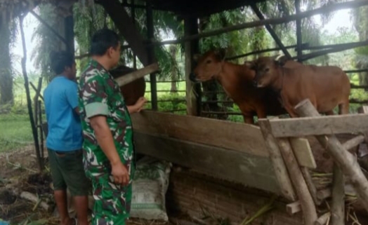 Dalam kunjunganya tersebut Serda Zakirman menyampaikan kepada Bpk Awaludin agar melaksanakan pengecekan rutin terhadap hewan sapi ternaknya.