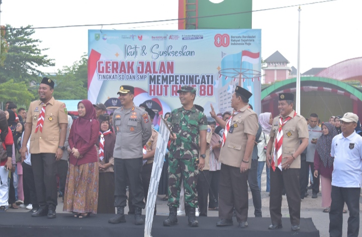 Suaralira.com, Rengat - Menjelang HUT RI ke - 80 berbagai kegiatan dilaksanakan yang salah satunya adalah gerak jalan dan hari ini Pembukaan Lomba Gerak Jalan Tingkat SD dan SMP dalam rangka Memeriahkan HUT RI Ke - 80 Tahun 2025.dilaksanakan.