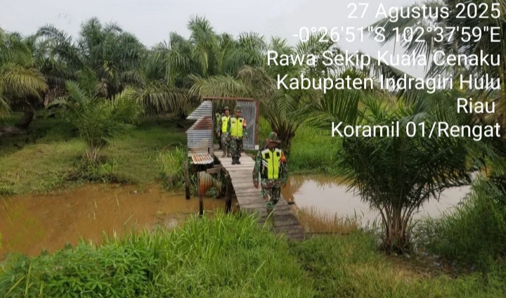 Suaralira.com, Rengat - Suasana cerah di Desa Rawa Sekip Kecamatan Kuala Cenaku dimanfaatkan Babinsa untuk kembali turun ke lapangan melaksanakan patroli pencegahan kebakaran hutan dan lahan (Karhutla), Rabu(27/08/2025).