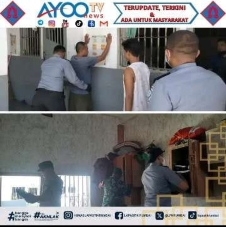 Razia berlangsung di blok hunian Lapas Narkotika Rumbai, melibatkan kegiatan penggeledahan menyeluruh, termasuk pemeriksaan barang-barang di kamar warga binaan dan penggeledahan badan secara langsung oleh petugas. P