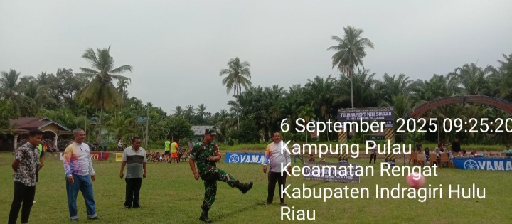 Suaralira.com, Rengat - Babinsa Koramil 01/Rengat Kodim 0302/Inhu Serda Zakirman Menghadiri acara Turnamen Bola kaki di Desa Kampung Pulau. Acara Turnamen ini di adakan oleh pemuda kampung pulau dan di dukung oleh tokoh masyarakat setempat.