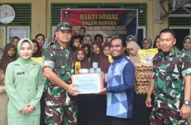 Suaralira com, Inhu - Menjelang HUT TNI ke-80 pada Oktober mendatang, Kodim 0302/Inhu menyalurkan bantuan sembako ke Panti Asuhan Nur Ananda Putri yang berada di Desa Pasir Kemili Kecamatan Rengat Kabupaten Indragiri Hulu, Selasa (30/9).