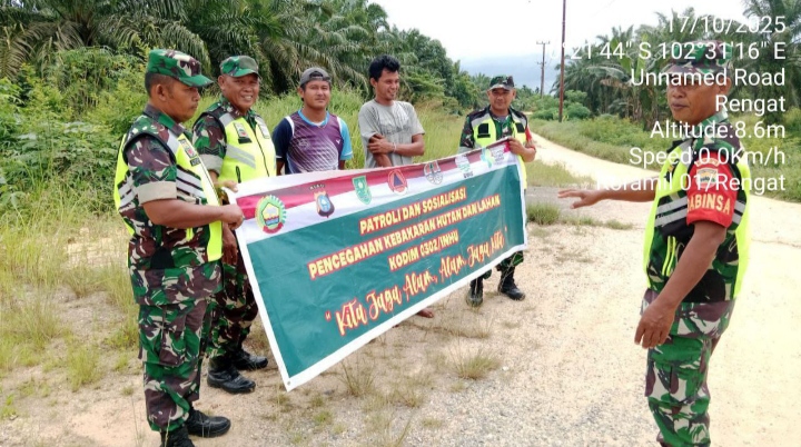 Seperti kegiatan yang dilakukan oleh Anggota Koramil 01/Rengat yang giat dan rutin melaksanakan patroli disertai sosialisasi Karhutla di wilayah Desa Kuantan Babu Kecamatan Rengat. Jumat 17/10/2025