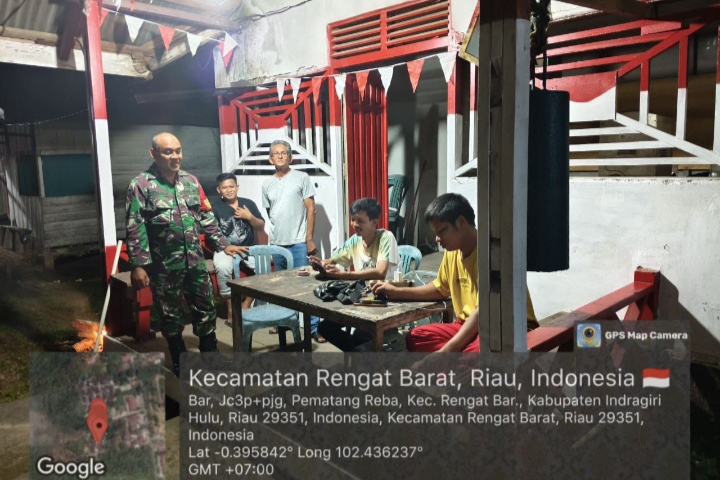 Suaralira.com, Rengat - Menjaga stabilitas keamanan dan ketertiban masyarakat di wilayah binaannya, Danpos Koramil 01/Rengat Peltu Herman melaksanakan patroli Sistem Keamanan Lingkungan (Siskamling)