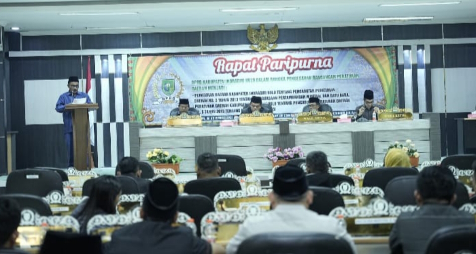 Suaralira.com, Inhu - Acara rapat Paripurna DPRD Kabupaten Indragiri Hulu dalam rangka Pengesahan Rancangan Peraturan Daerah menjadi - Peraturan Daerah Kabupaten Indragiri Hulu Inhu tentang pencabutan Peraturan Daerah No 3 tahun 2013 tentang penguasaan pertambangan mineral dan batu bara.