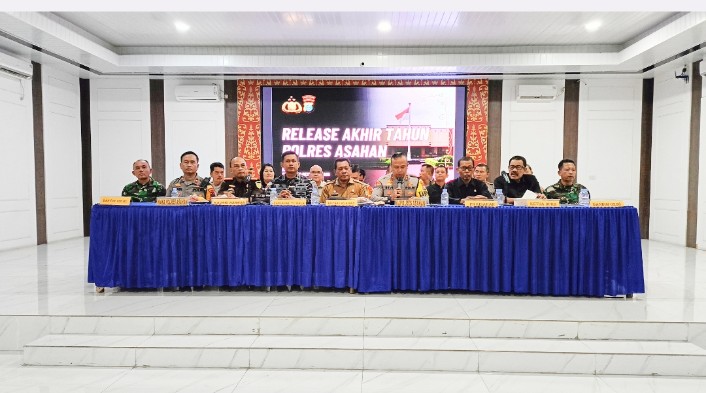 (Kisaran Asahan-Sumut) -- Polres Asahan menggelar Press Release capaian kinerja akhir tahun 2025, seperti Jumlah Tindak Pidana (JTP) dan Penyelesaian Tindak Pidana (PTP) se-jajaran Polsek wilayah hukum Polres Asahan, Selasa (30/12/2025) di Aula Atas Polres Asahan.